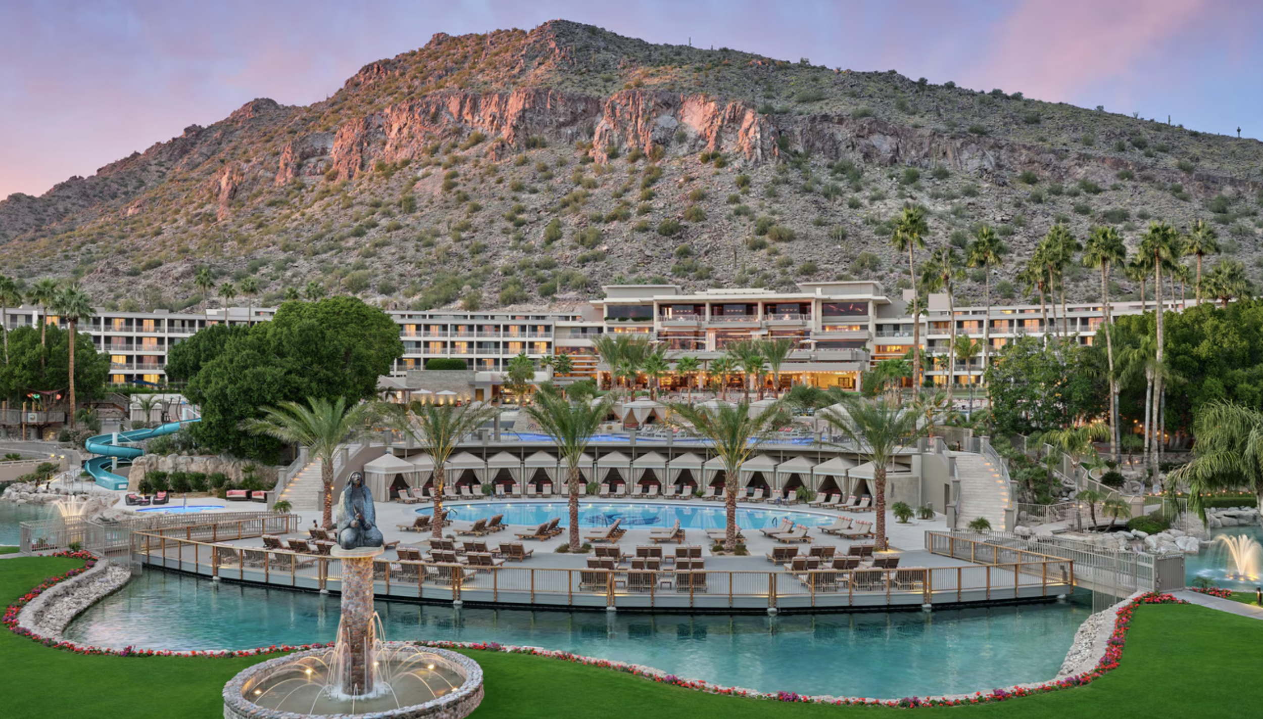 The resort revives its historic legacy while incorporating forward-thinking elements, including an on-site 18-hole par-3 golf course (The Short Course) open to guests and the public, with Camelback Mountain backdrops. It features an adults-only Sunset Pool for exclusive relaxation, a private Citizens Club with fitness and wellness access, complimentary daily fitness classes, and an art gallery showcasing contemporary works. Pet-friendly policies, in-room massages, and proximity to Paradise Valley's upscale setting add to its appeal as a modern desert oasis.