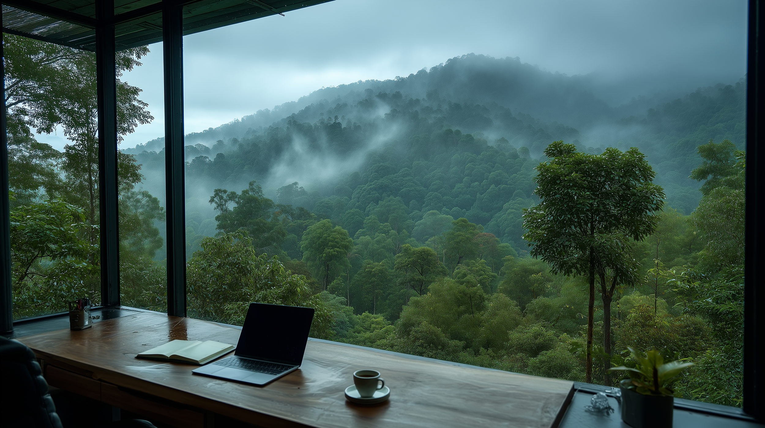 Early mornings on the bungalow terrace, before the heat builds and before the day's distractions arrive. This is where the focused, demanding work happens. Client deliverables, anything requiring real concentration, anything with a deadline. The terrace is quiet, the WiFi is reliable, and the jungle around you is doing its thing without asking anything of you.
