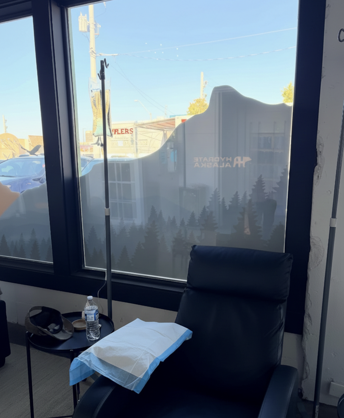 The treatment room was private and chill: recliner chair like a nice massage setup, soft lighting, optional ambient music (I chose low-key lo-fi beats), and a big window with city views but tinted for privacy. A licensed nurse (professional, efficient) came in to place the IV, super smooth, barely felt it in my arm. She explained the drip: pure NAD+ in saline, slow infusion to minimize side effects, with a follow-up Myers cocktail push (vitamins, glutathione) at the end for extra boost. She set the drip rate low at first, dimmed lights a bit, and said she'd check in every 30 minutes or so. "Relax, hydrate, maybe nap or scroll if you want, but most people zone out in the best way."