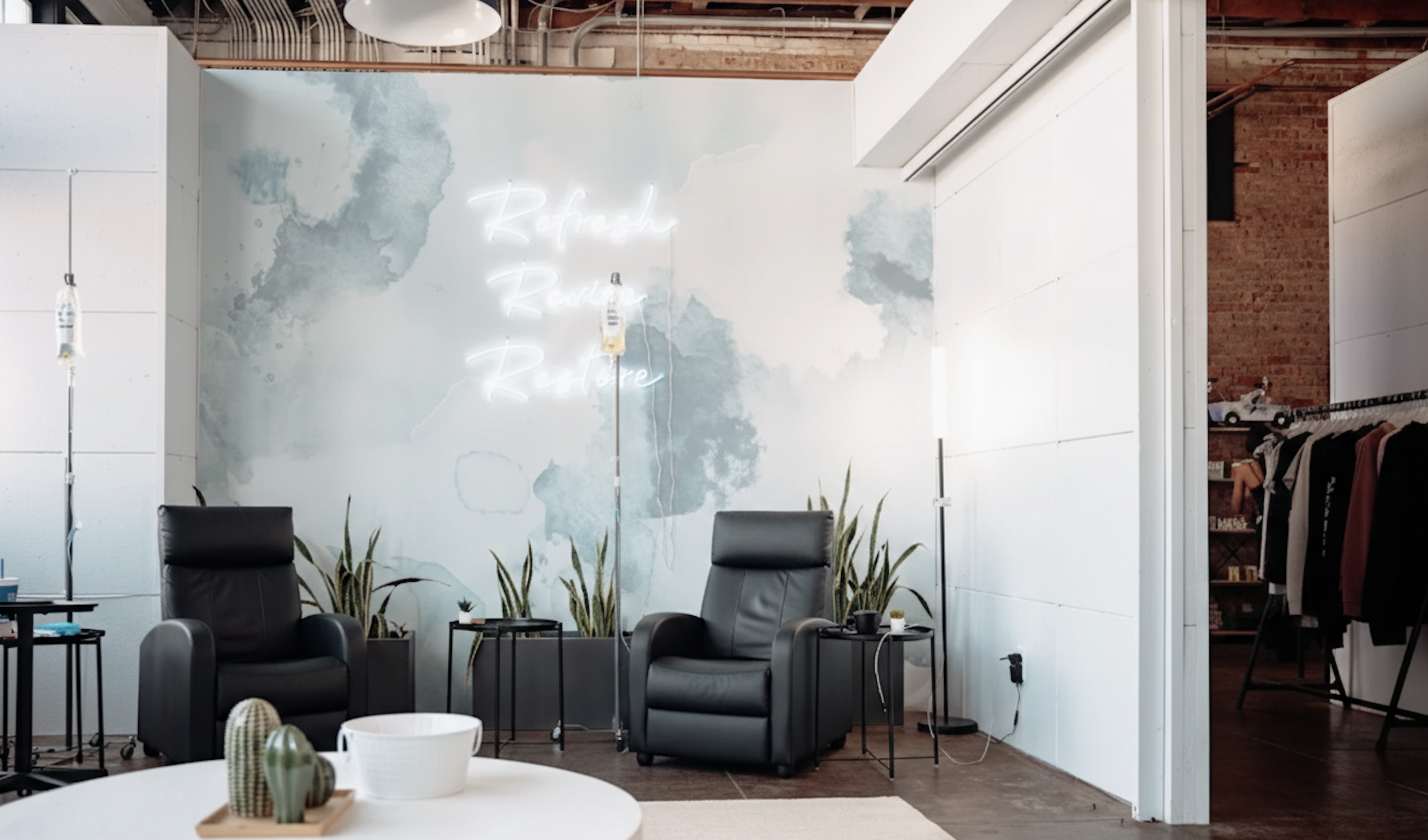 Walking in, the space hits right away as premium yet approachable: bright but not harsh lighting, fresh air with a light citrus or clean scent, comfy lounge chairs, and that biohacking edge with plants, modern decor, and a salt cave door visible in the back. I filled out the health questionnaire on the tablet, covering allergies, medications, any history of nausea or vein issues, and a brief chat about expectations. NAD+ is pitched as a cellular energizer, boosting mitochondria, improving focus, energy, recovery, anti-aging vibes, even some neuro benefits. They note it can take 2 to 4 hours depending on dose and tolerance, and some people feel chest tightness or nausea if pushed too fast, so they go slow and adjust. Super transparent, no pressure. I signed the waiver, she took my vitals quick, and handed me a comfy robe, blanket, and bottled water with electrolytes.