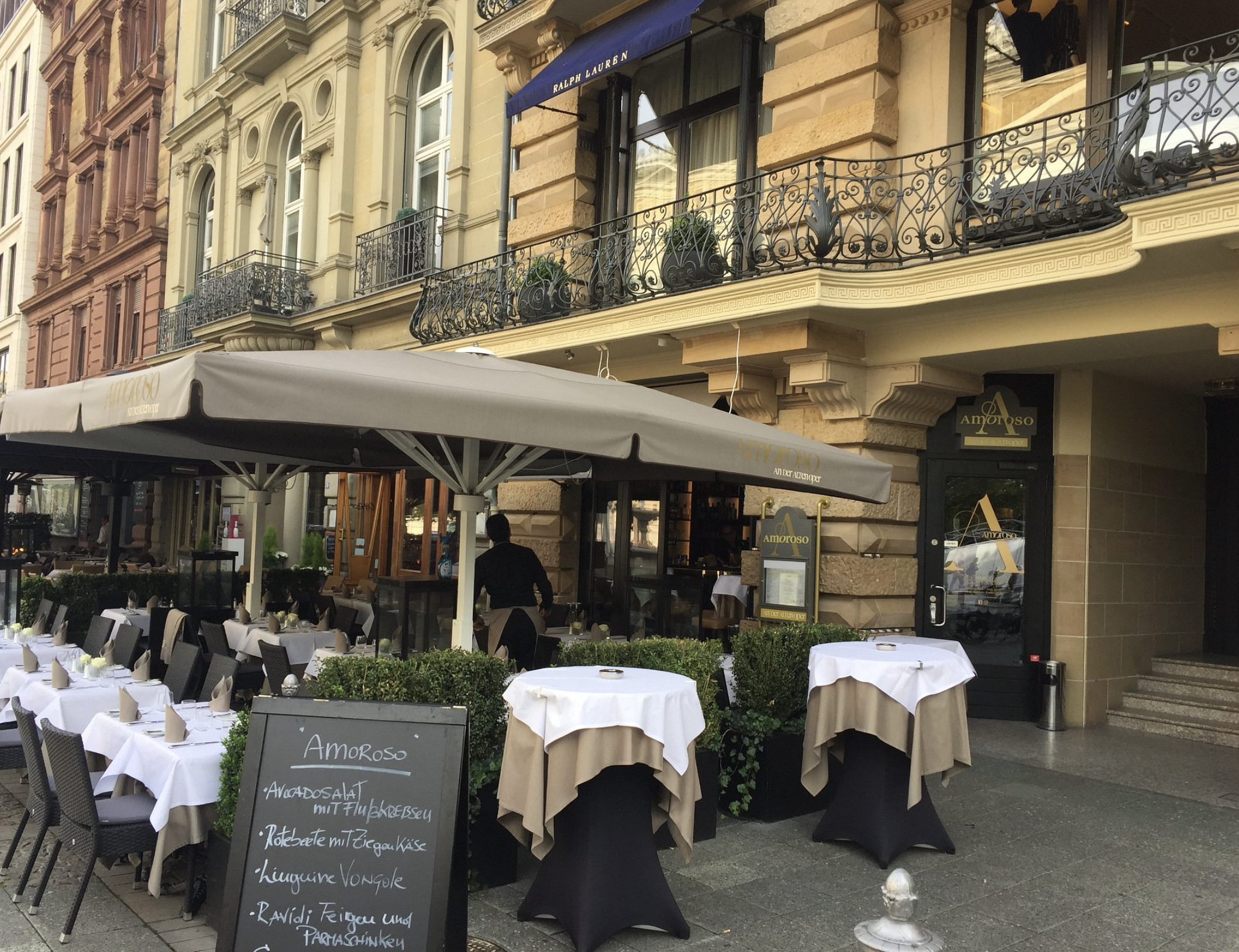 Dinner at AMOROSO an der Alten Oper was the perfect elegant Italian evening right next door to my hotel at the Sofitel. The restaurant sits at Opernplatz 8, literally steps from the iconic Alte Oper, so the location could not be more prime. It's that spot where you get the grand view of the restored opera house glowing at night, framed by the surrounding skyscrapers of the financial district, creating this beautiful contrast between classical beauty and modern city energy.