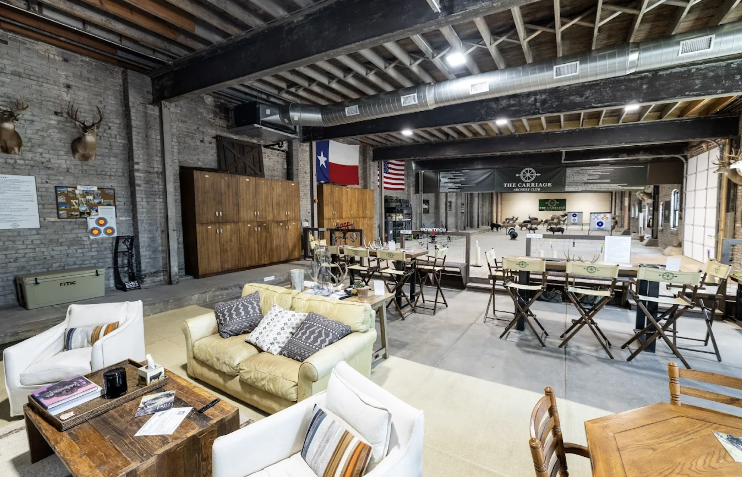 The Carriage Archery Club offered a completely different atmosphere. Housed in an old carriage house, the space immediately felt quieter and more contemplative. Exposed brick walls and high ceilings created a soft echo, and the air carried a clean blend of wax, feathers, and coffee drifting from the lounge. Instead of loud music, there was the gentle twang of bowstrings and the muted thud of arrows hitting foam targets.