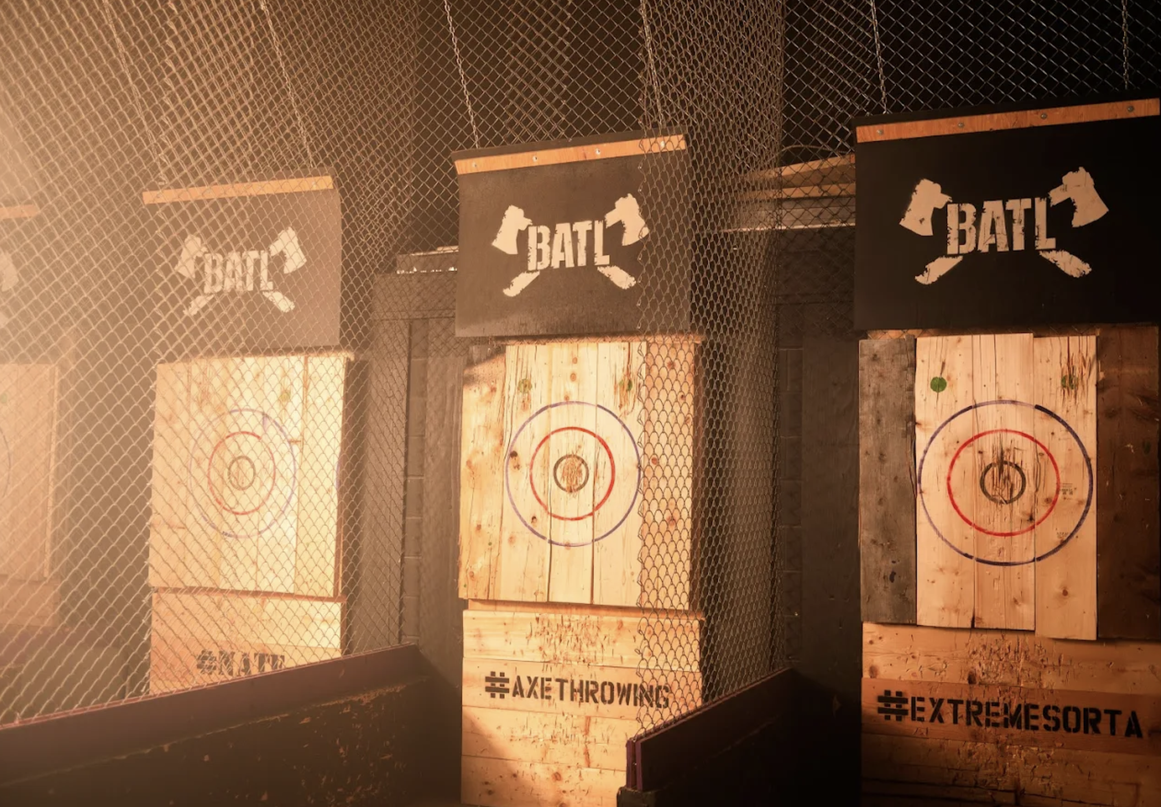 I’ll start with BATL Grounds in the Heights. Walking inside felt like stepping into a cozy, dimly lit warehouse gathering that just happened to involve axes. Cool air from the AC hit immediately, cutting through the December chill outside, and it carried a faint woody scent from the fresh pine targets mixed with a subtle metallic edge from the axes themselves. Music pulsed in the background, low and steady, just enough bass to vibrate through the concrete floor without overpowering the sharp thunk of axes hitting wood from nearby lanes.